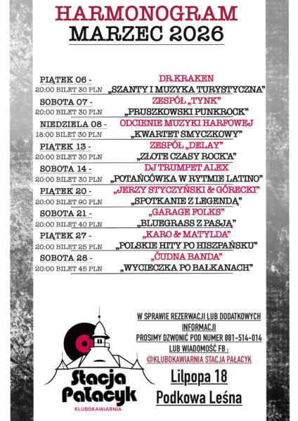W zaprzyjaźnionej z nami Stacji Pałacyk wydarzenia kulturalne nie zatrzymują się ani na chwilę. Zachęcamy do zapoznania się z programem na marzec. STACJA PAŁACYK