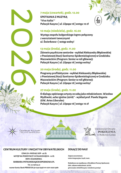 Zapraszamy na majowe wydarzenia w ramach Uniwersytetu Otwartego POKOLENIA.