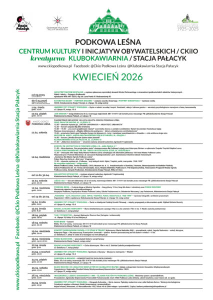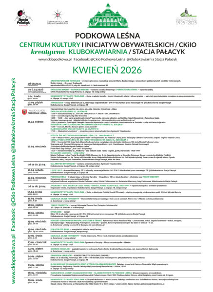 W kwietniu zima przeplata się z latem, a w naszym Centrum wydarzenia ciekawe mieszają się ze wspaniałymi. Zachęcamy do zapoznania się z nowym programem wydarzeń.