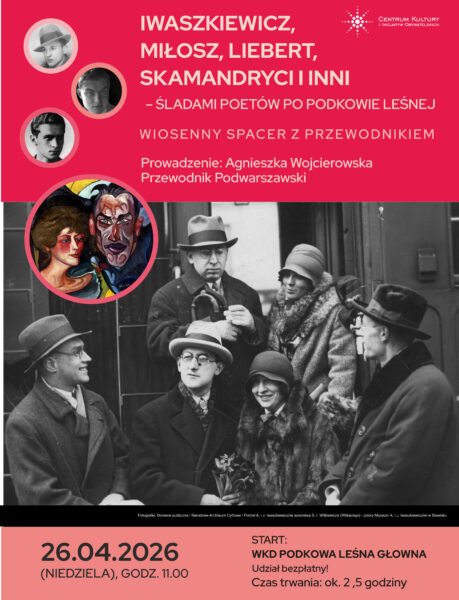 W niedzielę 26 kwietnia 2026, zapraszamy na kolejny spacer tematyczny z Agnieszką Wojcierowską po Podkowie, tym razem śladami poetów. Początek o godz. 11.00 na stacji