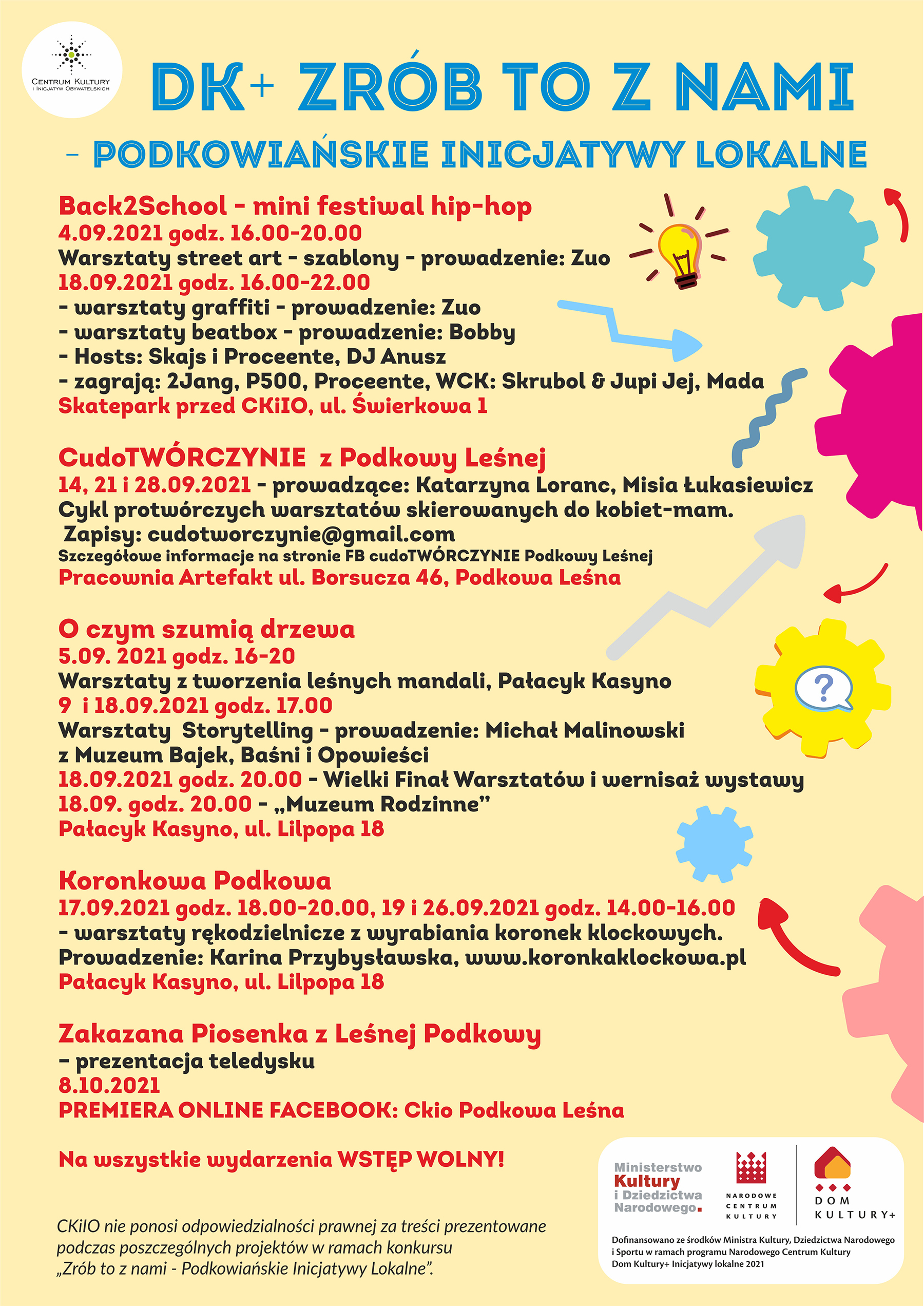 Przedstawiamy propozycje wrześniowych spotkań i warsztatów w Podkowie Leśnej. Wszystkie oferowane zajęcia są bezpłatne. Wystarczy zabrać jedynie dobry humor i przybyć z plecakiem pełnym dobrej energii.